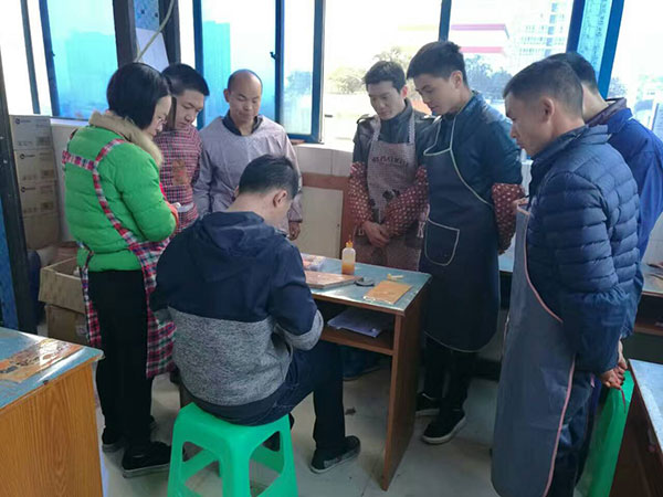 學(xué)員們認真的按照培訓(xùn)課程進行維修練習(xí),調(diào)色、刷色、干燥每個環(huán)節(jié)都是需要付出心血才會有收獲的??磳W(xué)員們刷色和吹風(fēng)的動作,就知道大家平時的苦練是值得的,學(xué)習(xí)家具維修沒有捷徑,唯有苦練、專研、勤問。